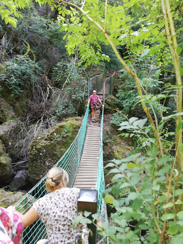 Lorsque l'on passe derrière celle-ci, par un petit chemin aménagé, tout en longeant des orgues basaltiques, on remarque une cavité où une source jaillit : « la fontaine des druides ». En poursuivant le sentier de randonnée (3 km-1h30) on rejoint par un pont de singe un autre ruisseau, le Monzola, affluent de la rivière.